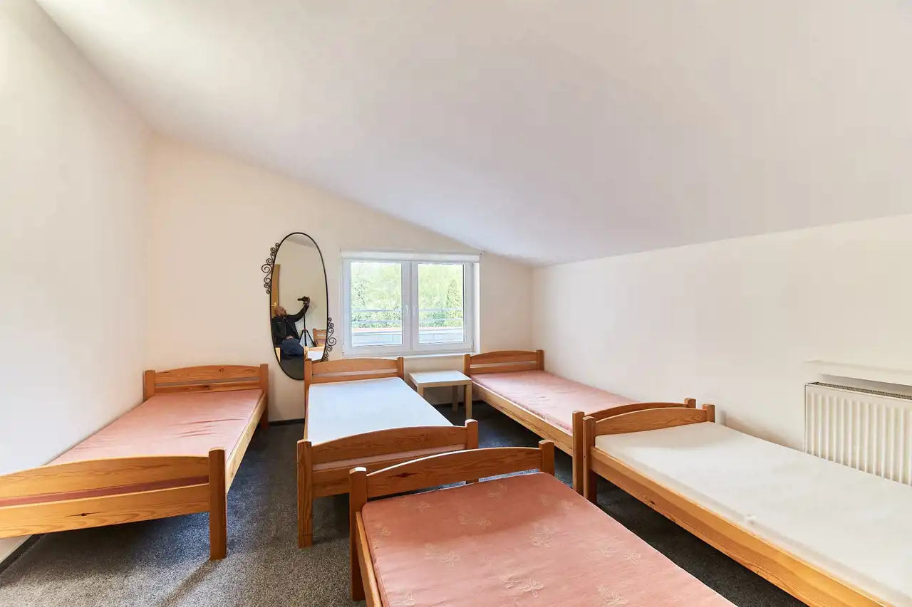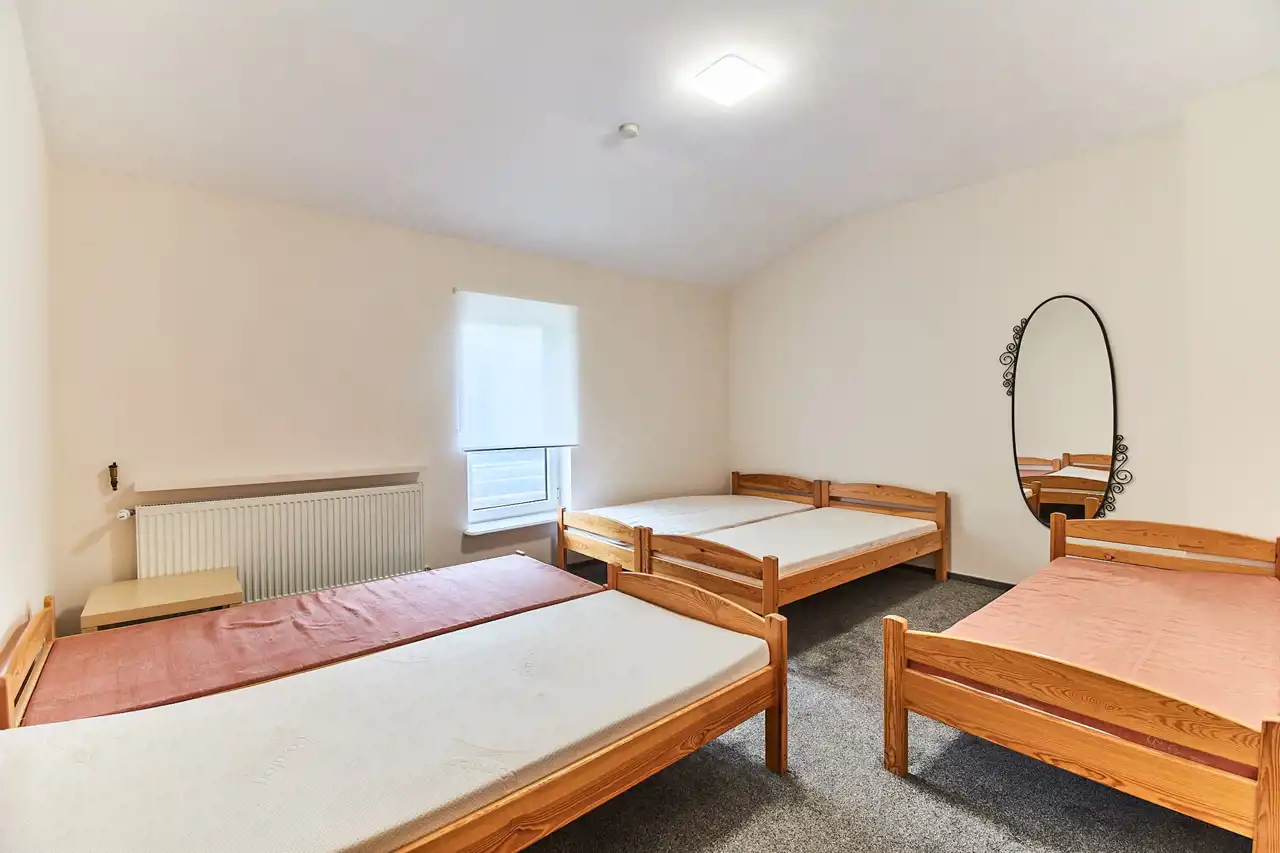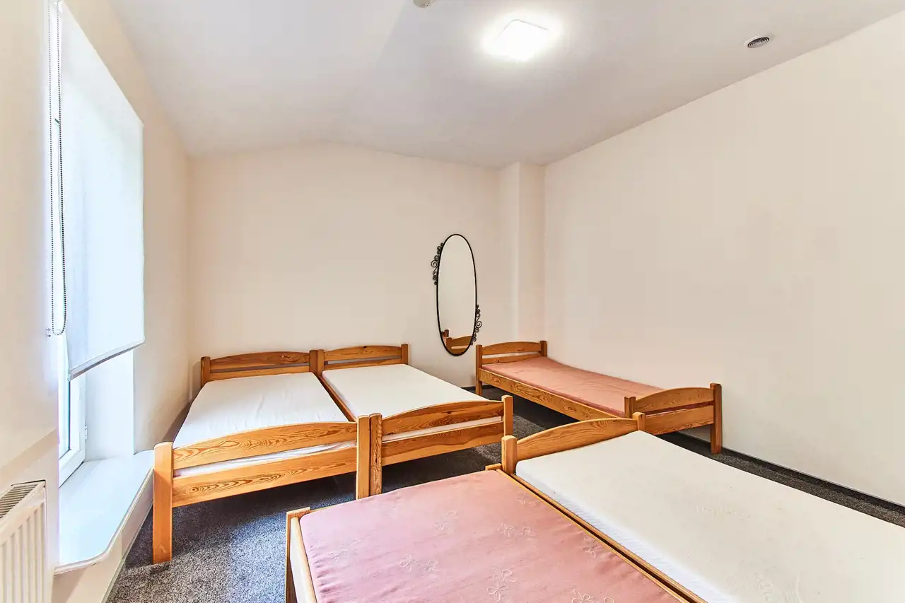 - 10 pokoi hotelowych od 2 osobowych do 5 osobowych kompletnie wyposażonych w łóżka.