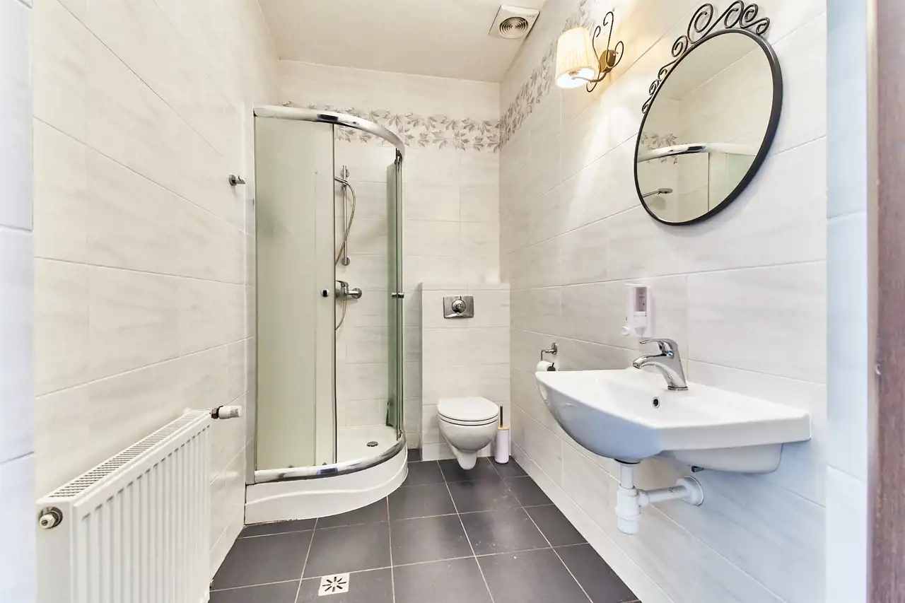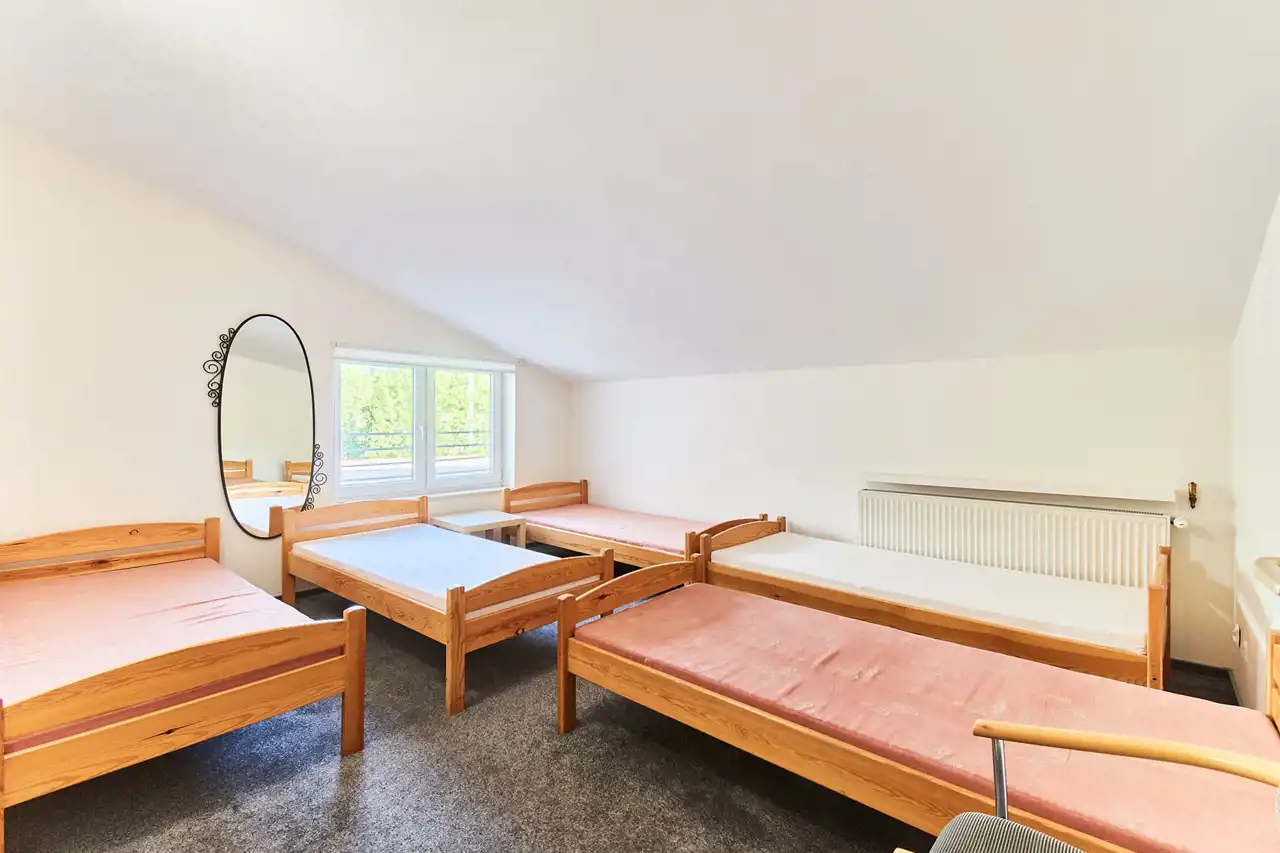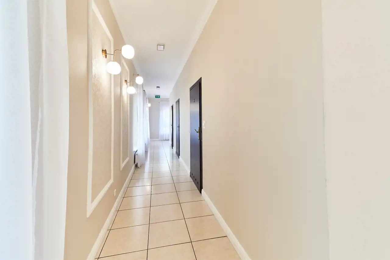 - 10 pokoi hotelowych od 2 osobowych do 5 osobowych kompletnie wyposażonych w łóżka.