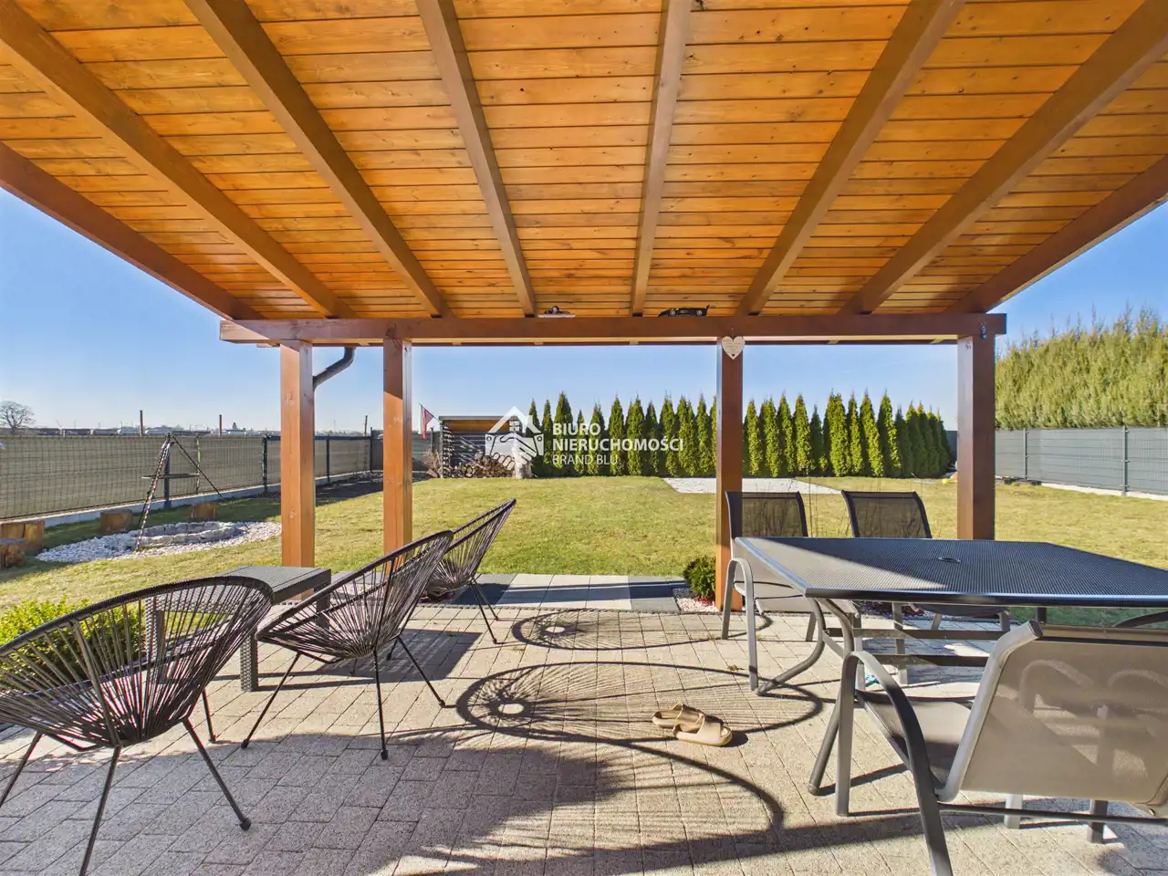 * duży, oświetlony taras wyposażony w meble