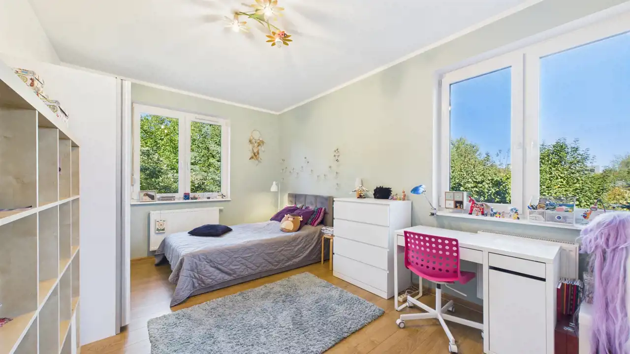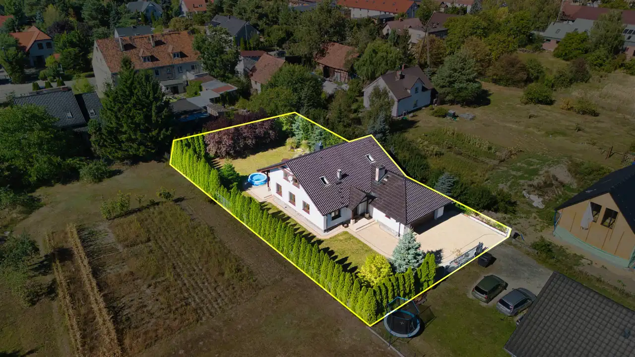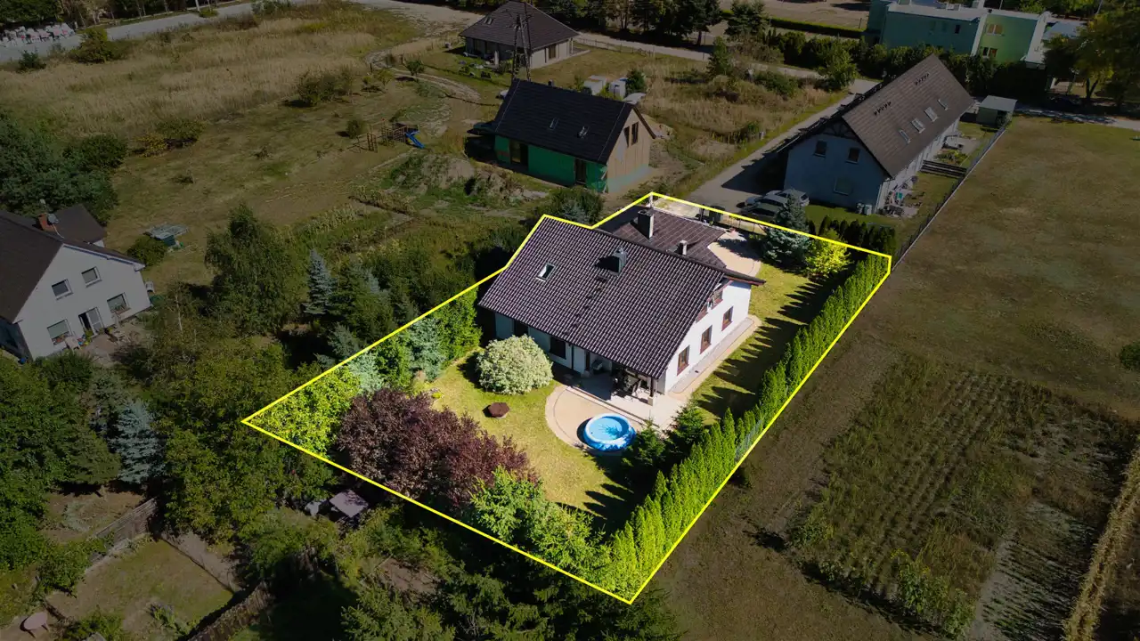 Działka otoczona zielenią, bez bliskiego sąsiedztwa innych domów, zapewnia ciszę i pełną prywatność. To idealne miejsce do relaksu na zadaszonym tarasie, rodzinnych spotkań i zabaw dzieci na świeżym powietrzu.