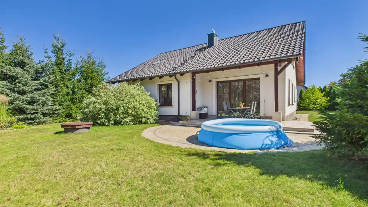 Na sprzedaż przestronny, wolnostojący dom o powierzchni całkowitej 220 m² (186 m² powierzchni użytkowej), położony na dużej, zagospodarowanej działce 950 m².