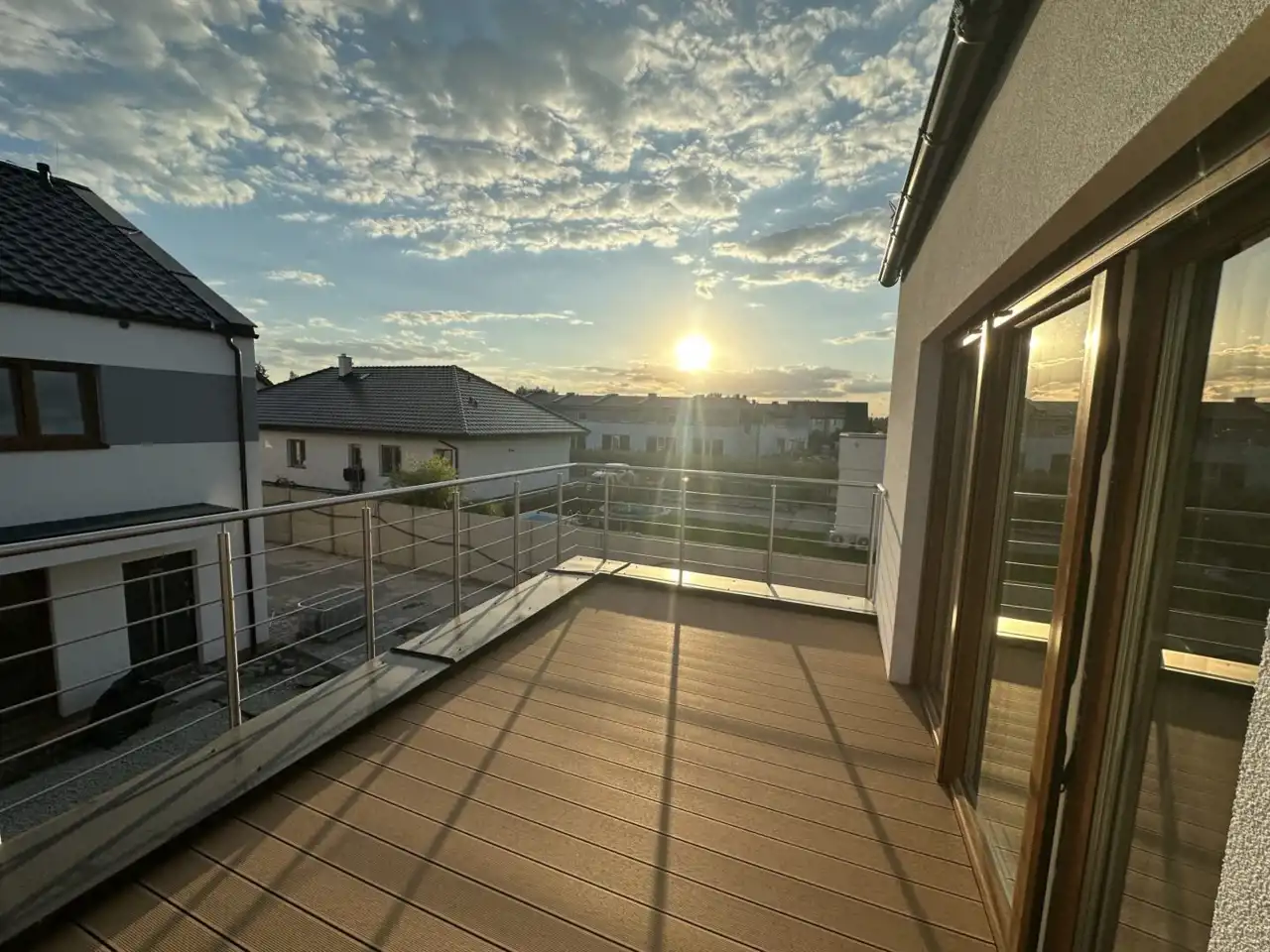 - balkony – żelbetowe wykończone deskami kompozytowymi