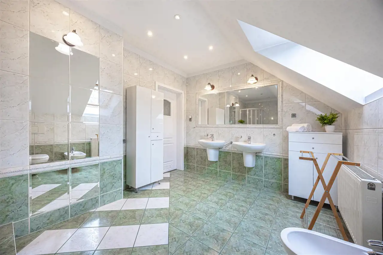 - Nowoczesny dom o pow. 156,9 m² na tej samej działce – idealne połączenie funkcji mieszkalnej z siedzibą firmy, z przestronnymi wnętrzami i oranżerią wychodzącą na zadbany ogród.