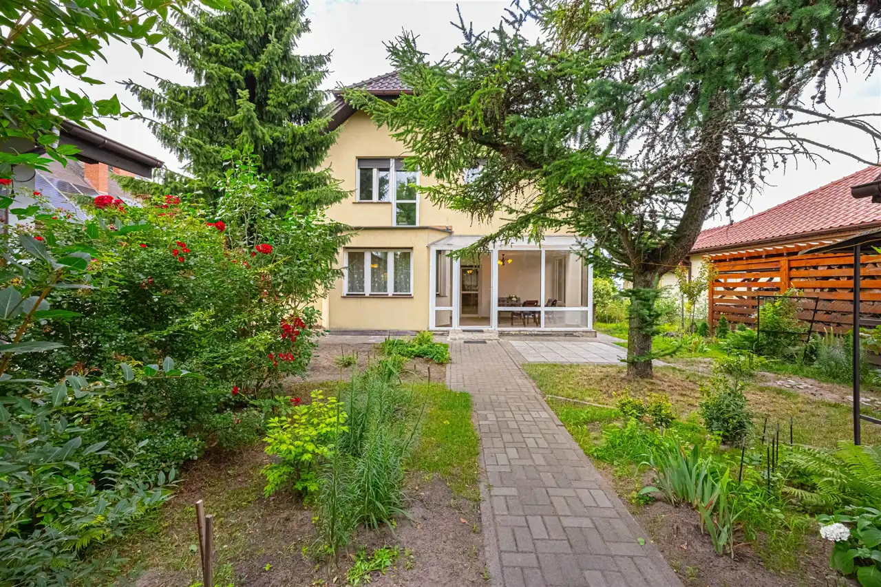 Wybudowany w 2007 roku dom o powierzchni użytkowej 156,9 m2 ma 3 kondygnacje, na których znajduje się salon z kominkiem, kuchnia ze spiżarnią, jadalnia z wyjściem do oranżerii, pralnia z prysznicem, WC, 3 przestronne sypialnie, duży pokój kąpielowy z ogromną wanną i prysznicem, garderoba oraz dodatkowo użytkowe poddasze doświetlone dwoma oknami dachowymi.