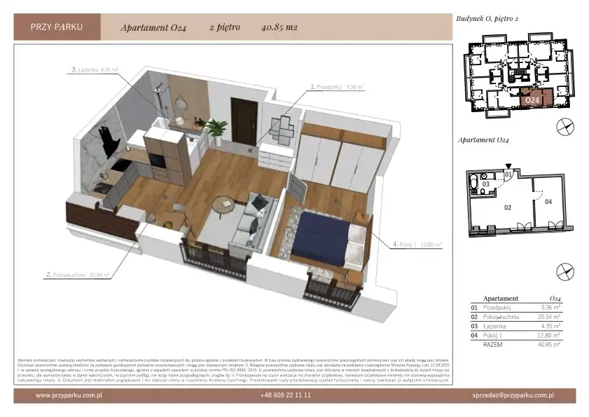 - Charakterystyka mieszkania 40.85 m2, 2 pokoje