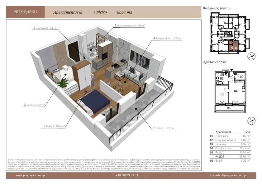 - Charakterystyka mieszkania 38.05 m2, 2 pokoje