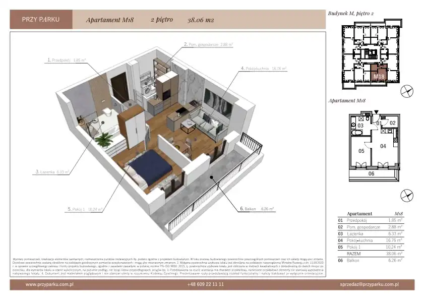 - Charakterystyka mieszkania 38.06 m2, 2 pokoje