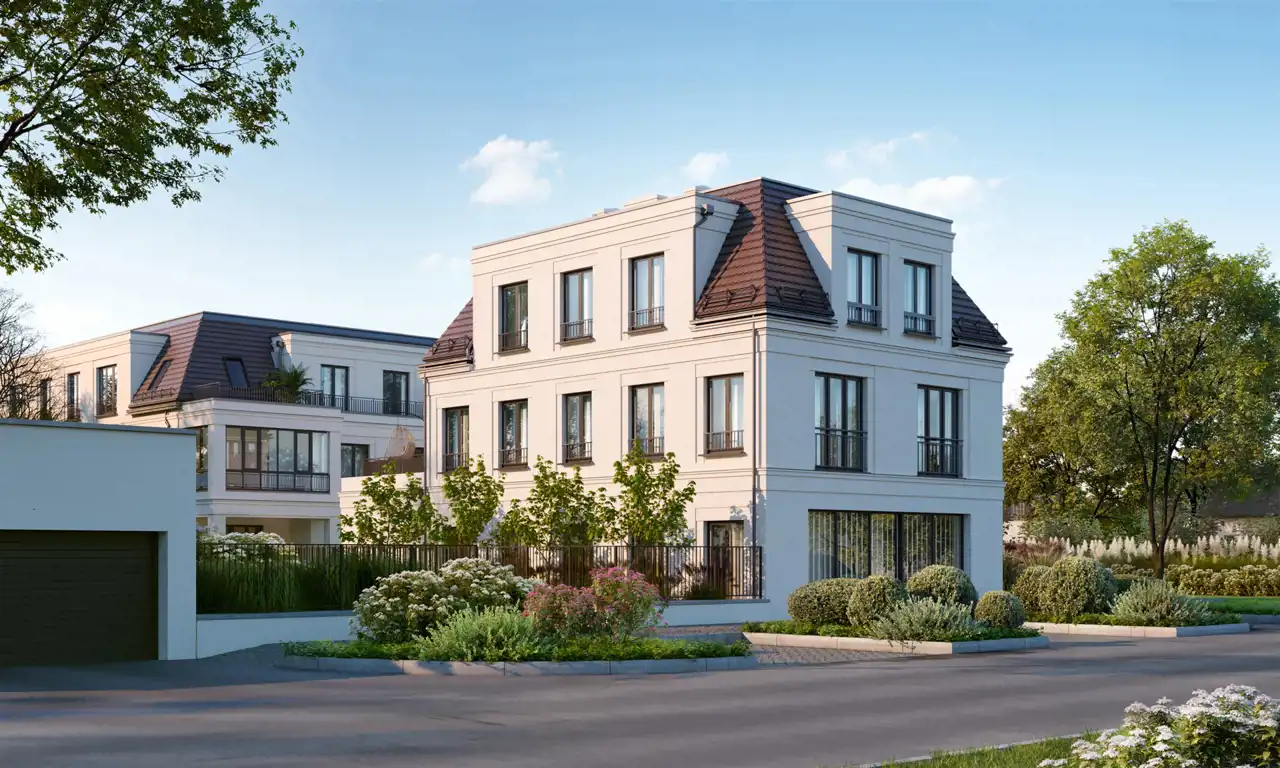 Dziewięć willi miejskich o harmonijnej, klasycystycznej linii rozplanowano z rozmachem na dwóch hektarach zieleni. Architektura osiedla nawiązuje do najlepszych europejskich wzorców — ponadczasowa, elegancka, z wyważoną kolorystyką elewacji i perfekcyjnie dopracowanymi detalami. Wnętrza imponują przestrzenią i światłem — panoramiczne przeszklenia oraz wysokość pomieszczeń sięgająca 2,8 metra sprawiają, że każdy apartament oddycha swobodą.
