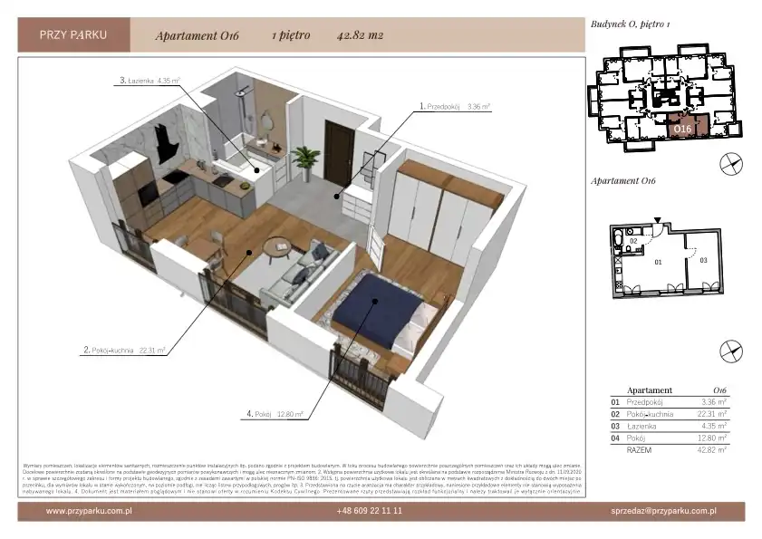 - Charakterystyka mieszkania 42.82 m2, 2 pokoje