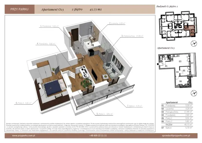 - Charakterystyka mieszkania 45.74 m2, 3 pokoje