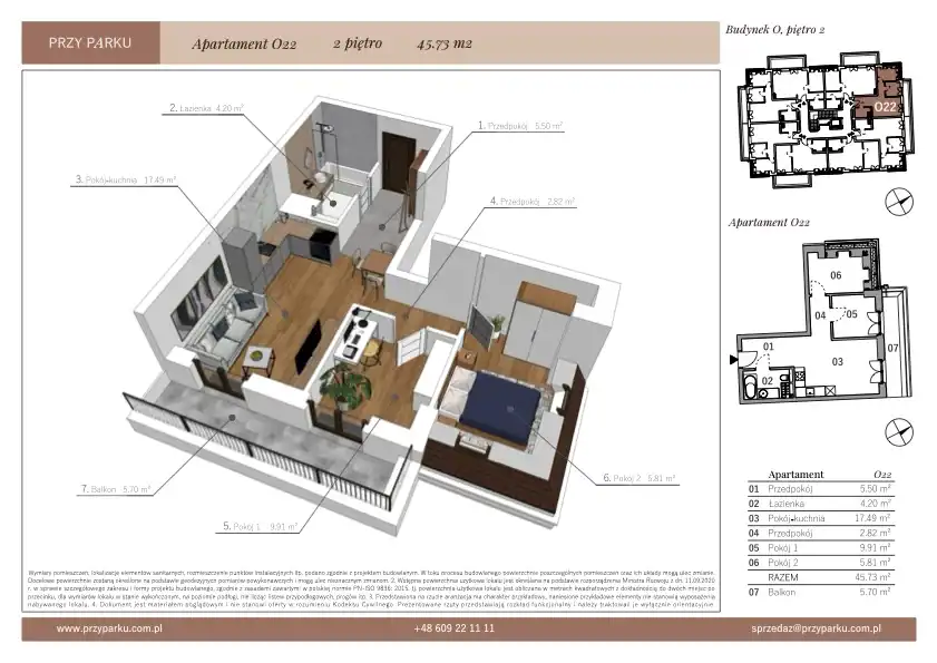 - Charakterystyka mieszkania 45.74 m2, 3 pokoje