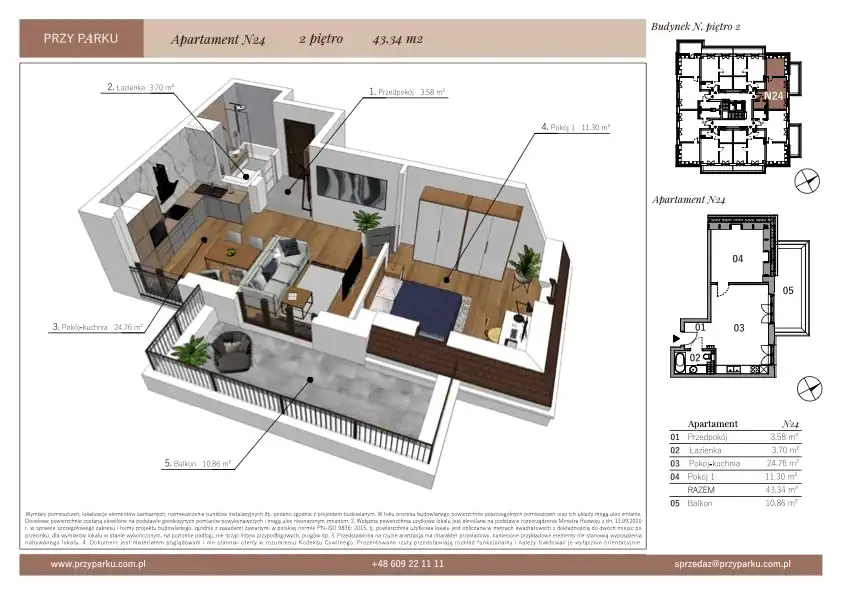 - Charakterystyka mieszkania 43.34 m2, 2 pokoje