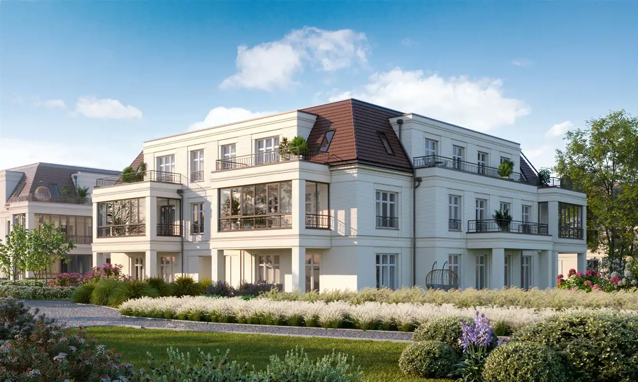 Dziewięć willi miejskich o harmonijnej, klasycystycznej linii rozplanowano z rozmachem na dwóch hektarach zieleni. Architektura osiedla nawiązuje do najlepszych europejskich wzorców — ponadczasowa, elegancka, z wyważoną kolorystyką elewacji i perfekcyjnie dopracowanymi detalami. Wnętrza imponują przestrzenią i światłem — panoramiczne przeszklenia oraz wysokość pomieszczeń sięgająca 2,8 metra sprawiają, że każdy apartament oddycha swobodą.