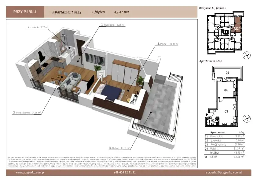 - Charakterystyka mieszkania 43.41 m2, 2 pokoje