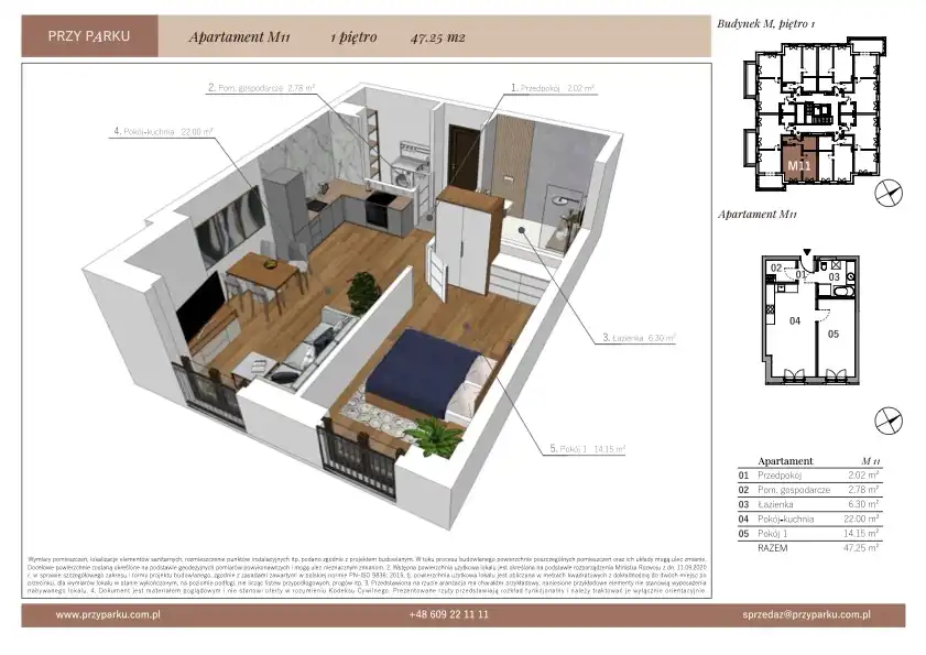 - Charakterystyka mieszkania 47.3 m2, 3 pokoje
