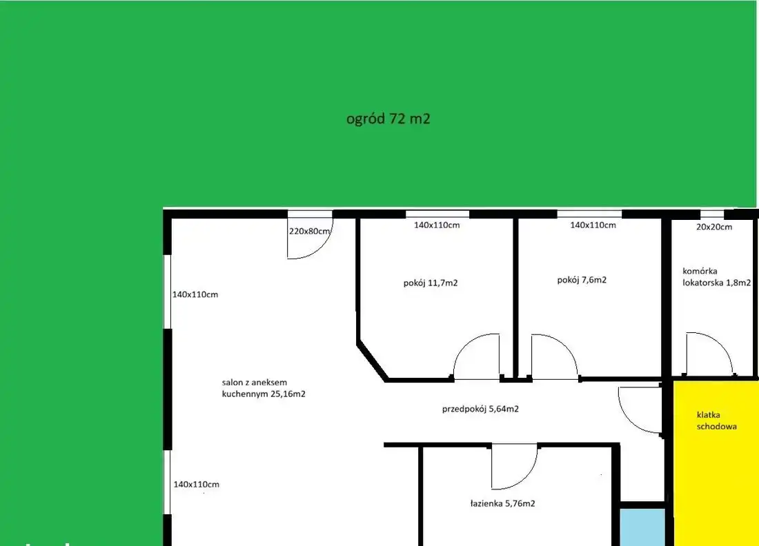 Powierzchnia: 55,86 m² + ogród 72 m²