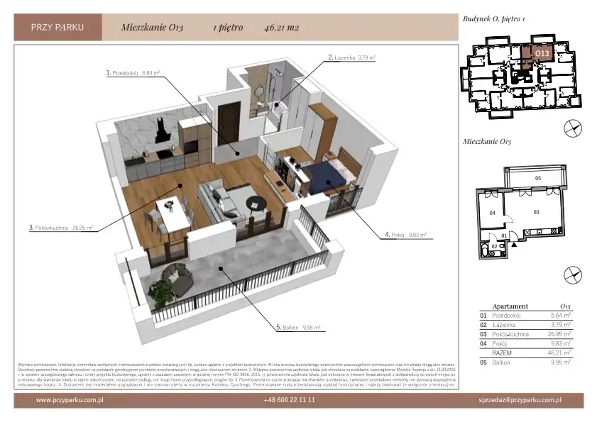 - Charakterystyka mieszkania 46.21 m2, 2 pokoje