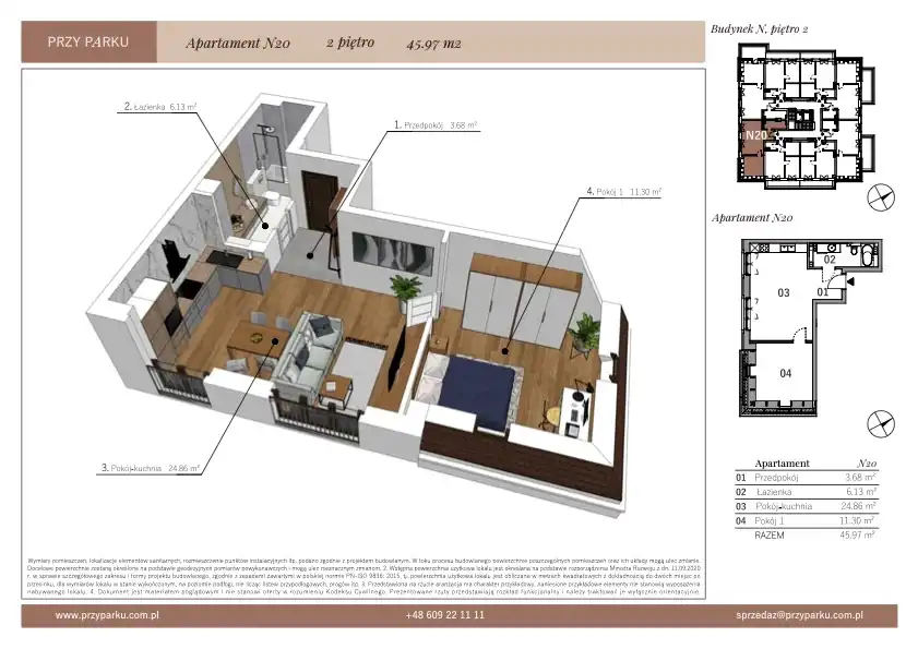 - Charakterystyka mieszkania 45.97 m2, 2 pokoje