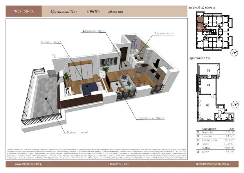 - Charakterystyka mieszkania 46.04 m2, 2 pokoje