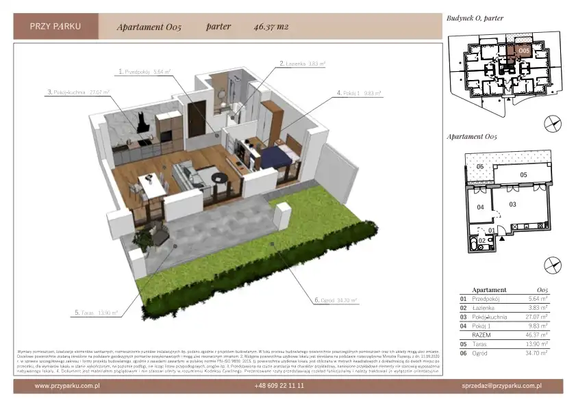 - Charakterystyka mieszkania 46.37 m2, 2 pokoje