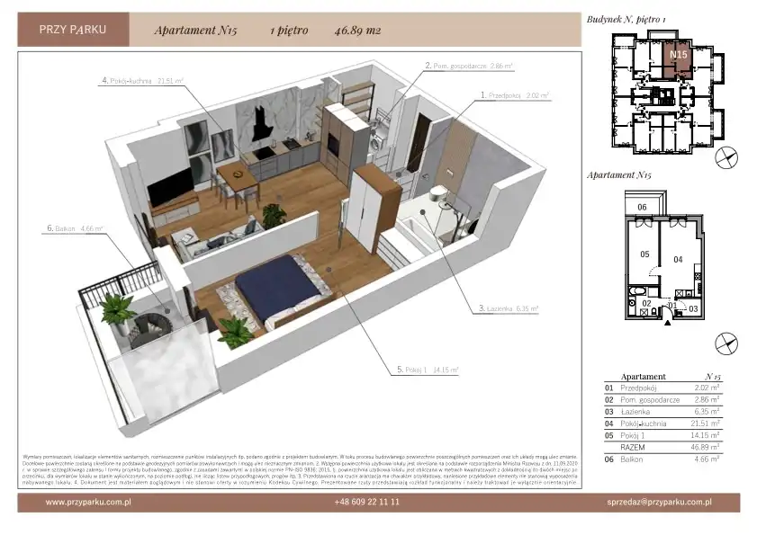 - Charakterystyka mieszkania 46.89 m2, 2 pokoje