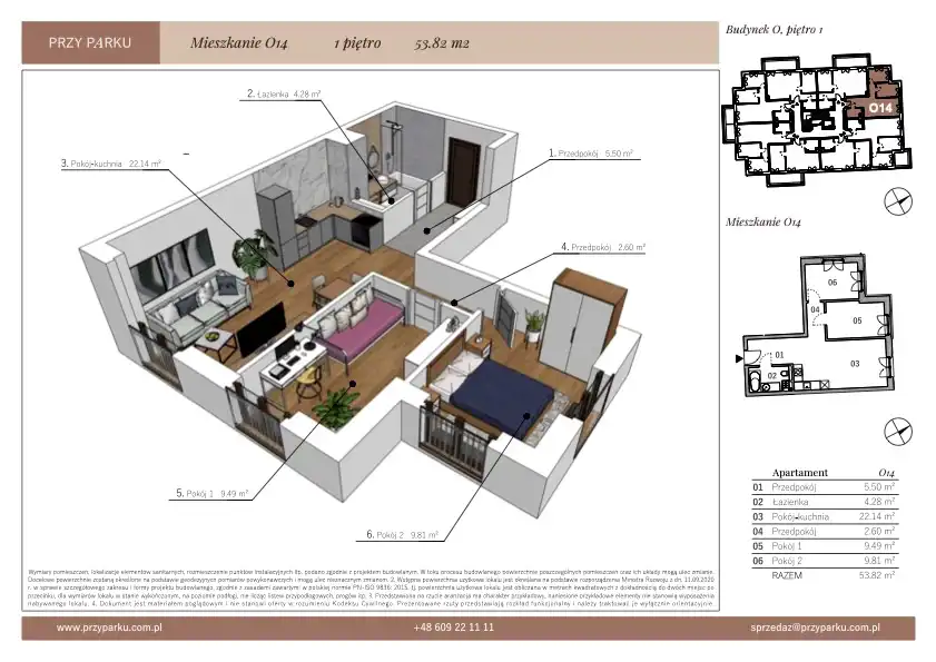 - Charakterystyka mieszkania 53.82 m2, 3 pokoje