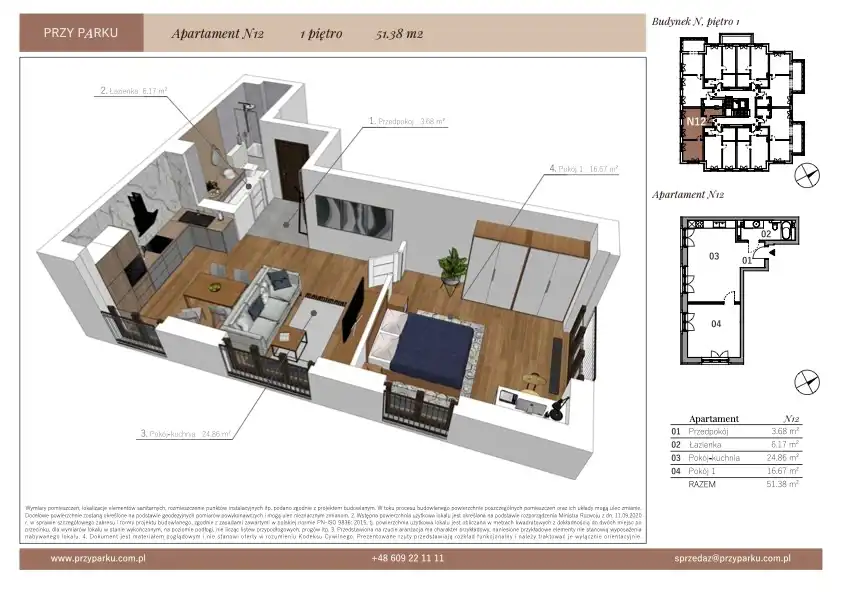 - Charakterystyka mieszkania 51.38 m2, 2 pokoje