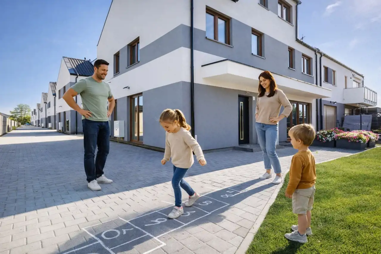 Metraż 89 m² na dwóch poziomach daje realną alternatywę dla segmentu lub małego domu, przy zachowaniu skali apartamentu. Cztery pokoje zwiększają elastyczność użytkową i atrakcyjność rynkową.