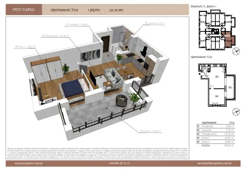 - Charakterystyka mieszkania 59.59 m2, 2 pokoje