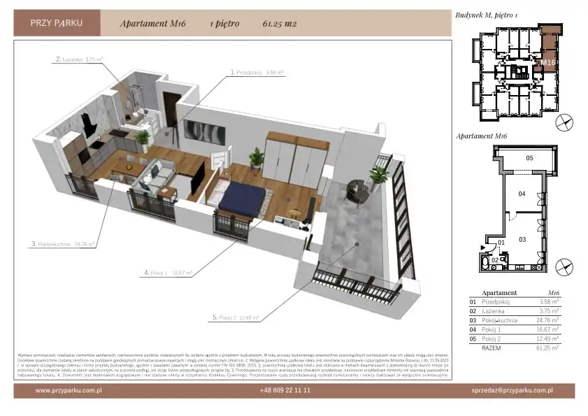 - Charakterystyka mieszkania 61.22 m2, 3 pokoje