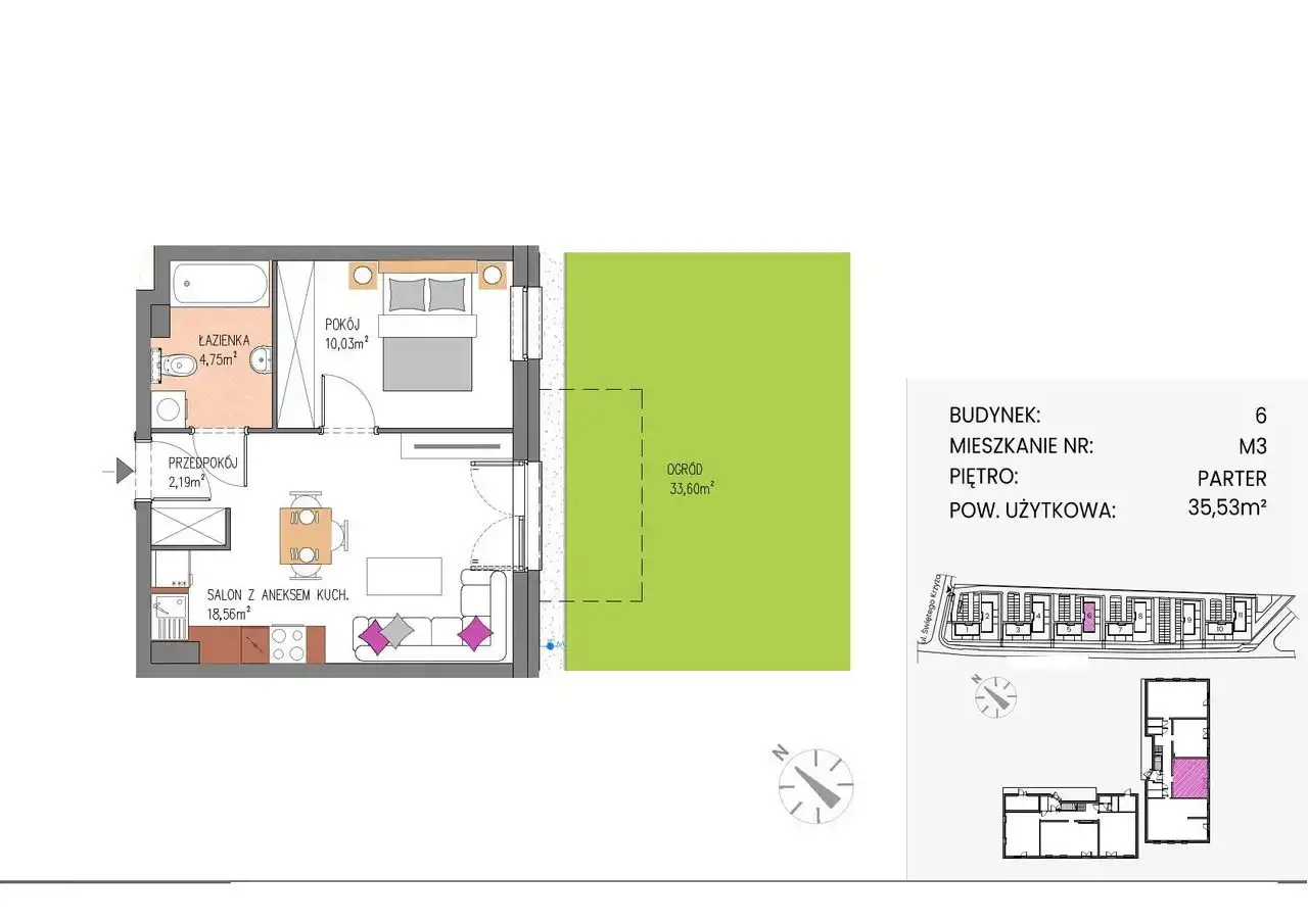 - Charakterystyka mieszkania 35.64 m2, 2 pokoje