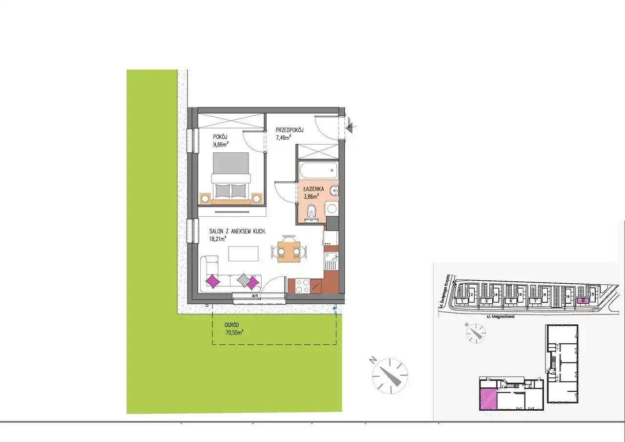 - mieszkanie skrajne z dużym ogródkiem o powierzchni 70,55 m2