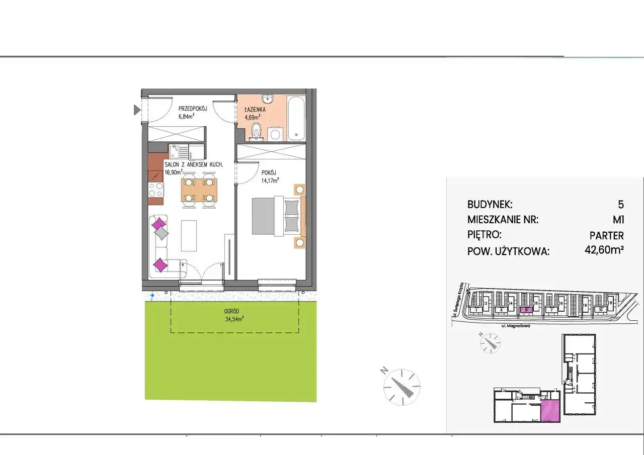 - mieszkanie z ogródkiem o powierzchni 34 m2