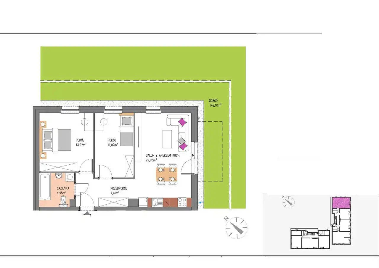 - mieszkanie skrajne z dużym ogródkiem o powierzchni 140 m2