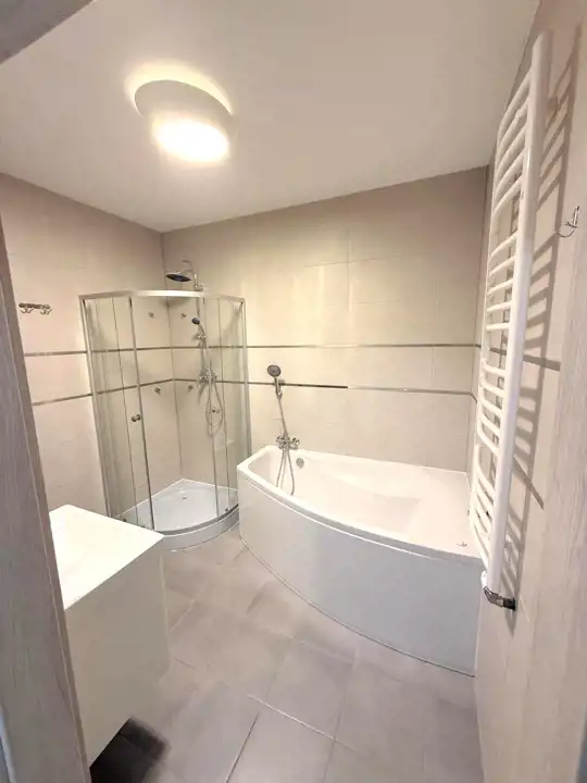W całym mieszkaniu położono kafle, co nadaje wnętrzu spójność i praktyczną elegancję. Dwa balkony pozwalają złapać oddech o każdej porze dnia. Klimatyzacja zapewnia wygodę przez cały rok. Do mieszkania przynależy komórka lokatorska. Jeden z pokoi został dodatkowo wygłuszony.