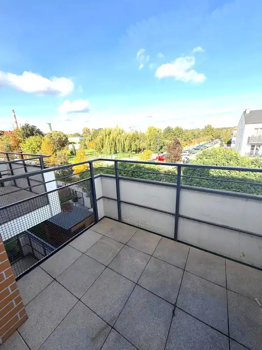 Osiedle jest ogrodzone, z dużym wewnętrznym parkingiem i spokojną atmosferą. Wszystkie media miejskie. Czynsz wynosi około 950 zł.