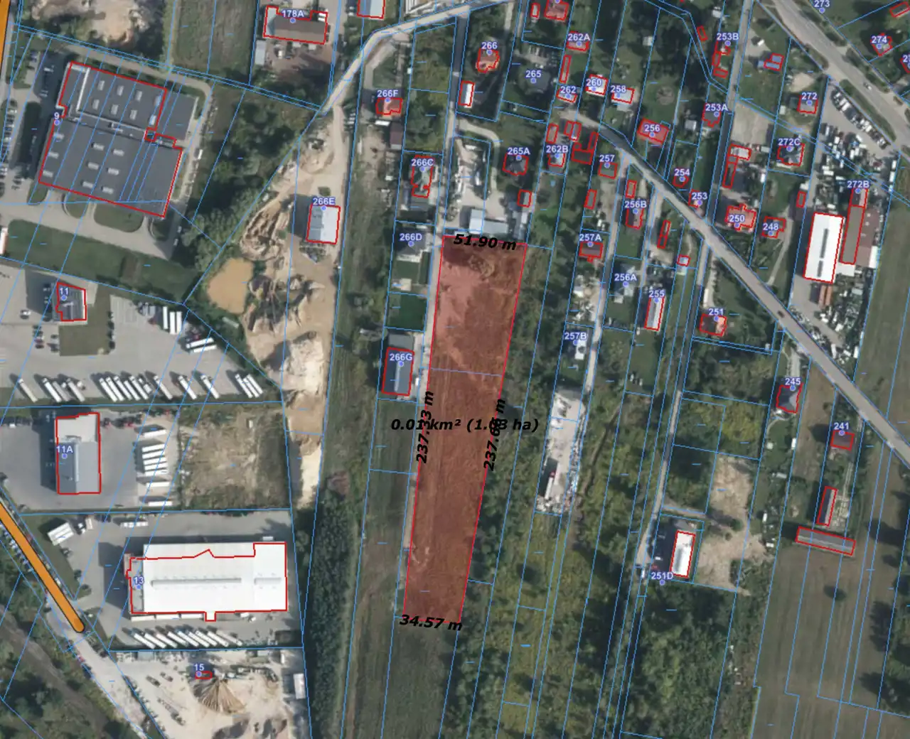 Wymiary: 52m x 238m x 35m x 237m
