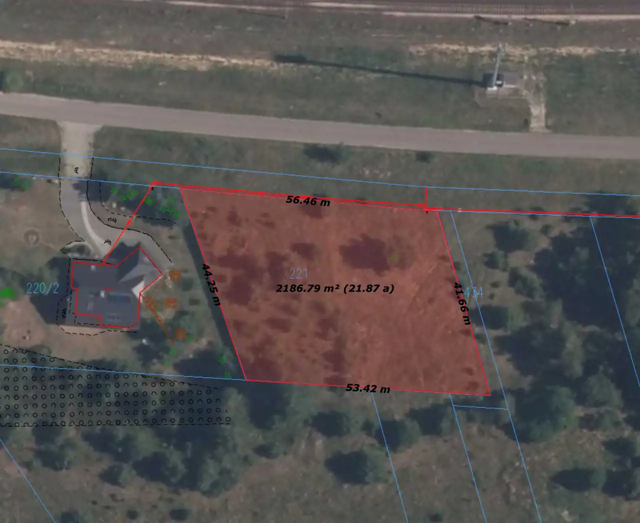 - Nieruchomość składa się z działki o nr geodezyjnym: 221.