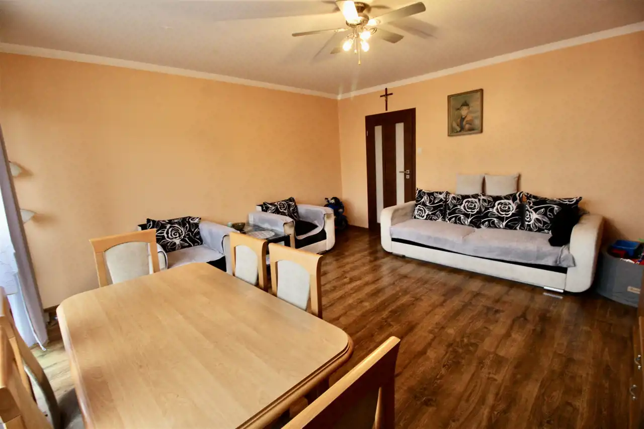W skład nieruchomości wchodzi kuchnia, duży salon, pokój, łazienka z wc oraz przestronny przedpokój z pojemnymi szafami w zabudowie.