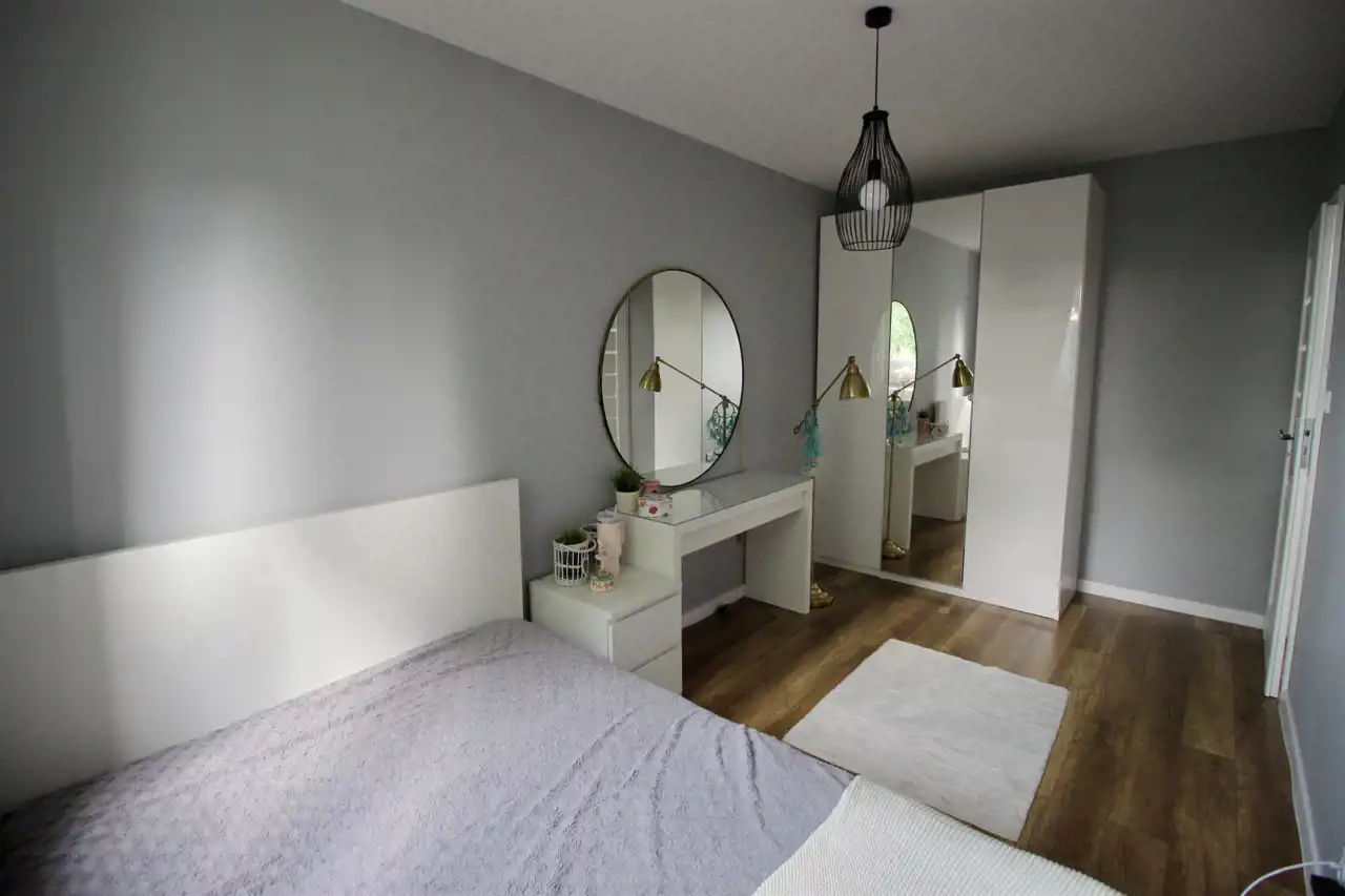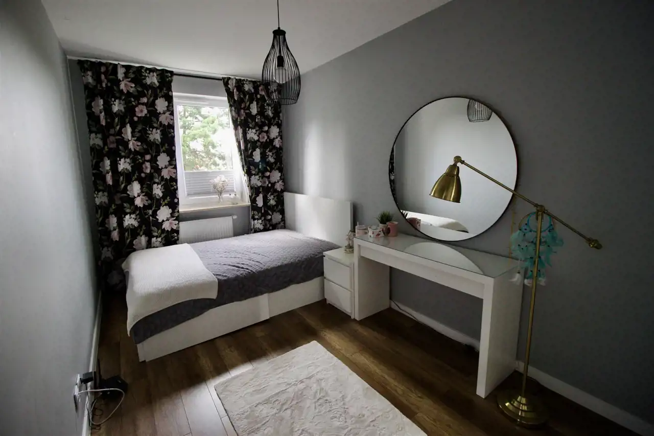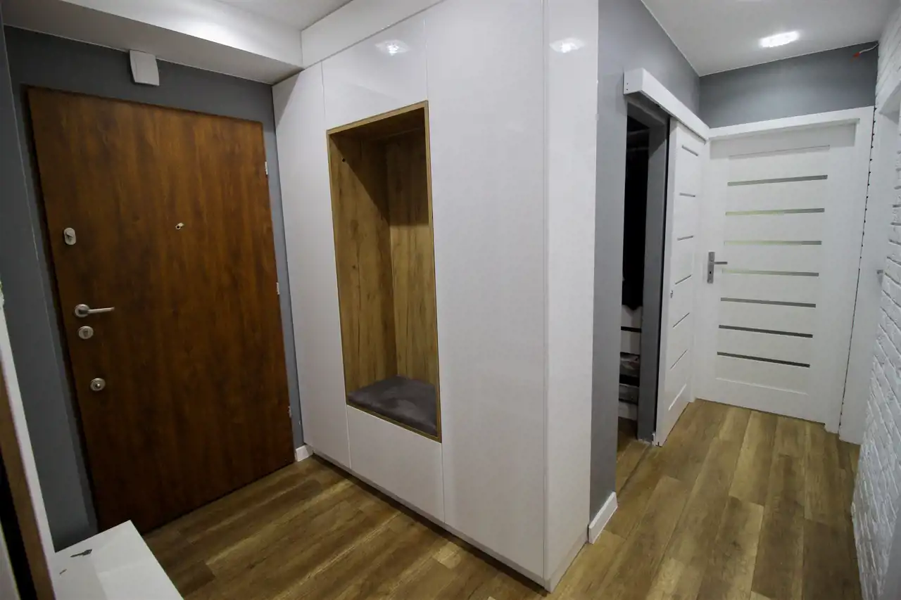 Na całej powierzchni lokalu jest dokładnie wszystko, co jest potrzebne do komfortowego mieszkania. Znajdziemy tu salon połączony z aneksem kuchennym i jadalnią, ustawne dwie sypialnie wyposażone w szafy, dodatkową sypialnia wygospodarowana z części kuchni, duży korytarz z szafami w zabudowie, garderobę oraz piękną i przestronną łazienką z zabudową do przechowywania.