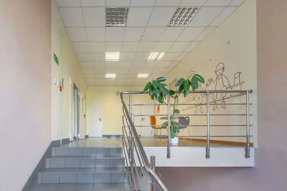 Na ogrodzonym terenie znajdują się dwa budynki biurowe o powierzchniach użytkowych 2830,76 m2 oraz 584,09 m2. Pierwszy z obiektów posiada 4 kondygnacje – 3 nadziemne i piwnica, drugi zaś 2-kondygnacyjny (bez piwnicy). Wewnątrz budynków mieszczą się powierzchnie biurowe (m.in. w układzie gabinetowym) oraz pomieszczenia socjalne, gospodarcze i techniczne. Obiekt do adaptacji według potrzeb i wykorzystania na cele biurowo-usługowe. Nieruchomość posiada korzystną ekspozycję oraz bramę wjazdową od ulicy Błonie. Na działce utwardzony teren z miejscami parkingowymi.