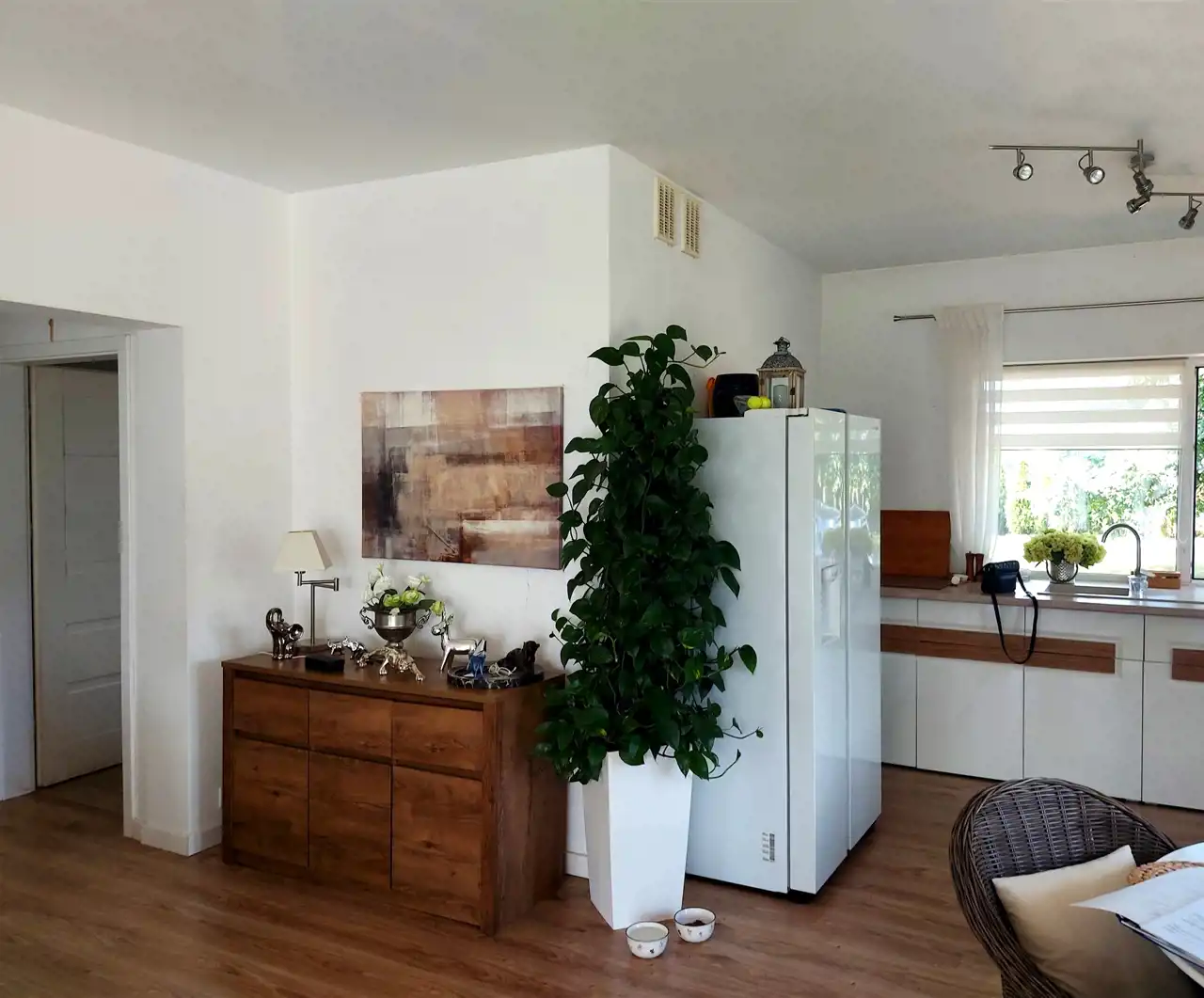 Oferujemy na sprzedaż piękny parterowy dom całoroczny o powierzchni użytkowej 85,72 m2, położony w urokliwej miejscowości Siedliszcze (40 km od Lublina, 20 km od Chełma). Dom składa się z dużego salonu połączonego z kuchnią i jadalnią (40 m2), dwóch sypialni, łazienki, holu, wiatrołapu i kotłowni. Nieruchomość wykończona w wysokim standardzie, z pełnym umeblowaniem i dbałością o najmniejszy detal. W pokojach panele podłogowe, w łazience płytki. Wystrój domu utrzymany w naturalnej, jasnej kolorystyce. Dom odebrany w 2021 roku, ogrzewany nowym piecem na opał plus ogrzewanie podłogowe. Z salonu i sypialni wyjście na duży taras, dom z dużą ilością przeszkleń bardzo jasny i przytulny. Obok nieruchomości znajduje się budynek gospodarczy o powierzchni użytkowej 68,09 m2, który może pełnić funkcję pracowni lub mieszkalną. Budynek jest w pełni wykończony i ogrzewany, z łazienką, dużym salonem i wydzieloną częścią kuchenną. Dom mieści się w malowniczej okolicy, wśród dużej ilości drzew (przed domem kilkusetlenia lipa) działka ogrodzona, w pełni zagospodarowana, za domem staw. Dodatkowo na działce zamontowane oświetlenie zewnętrzne, dające niepowtarzalny klimat nieruchomości. Oferta skierowana dla osób ceniących komfort, spokój i bliskość natury.