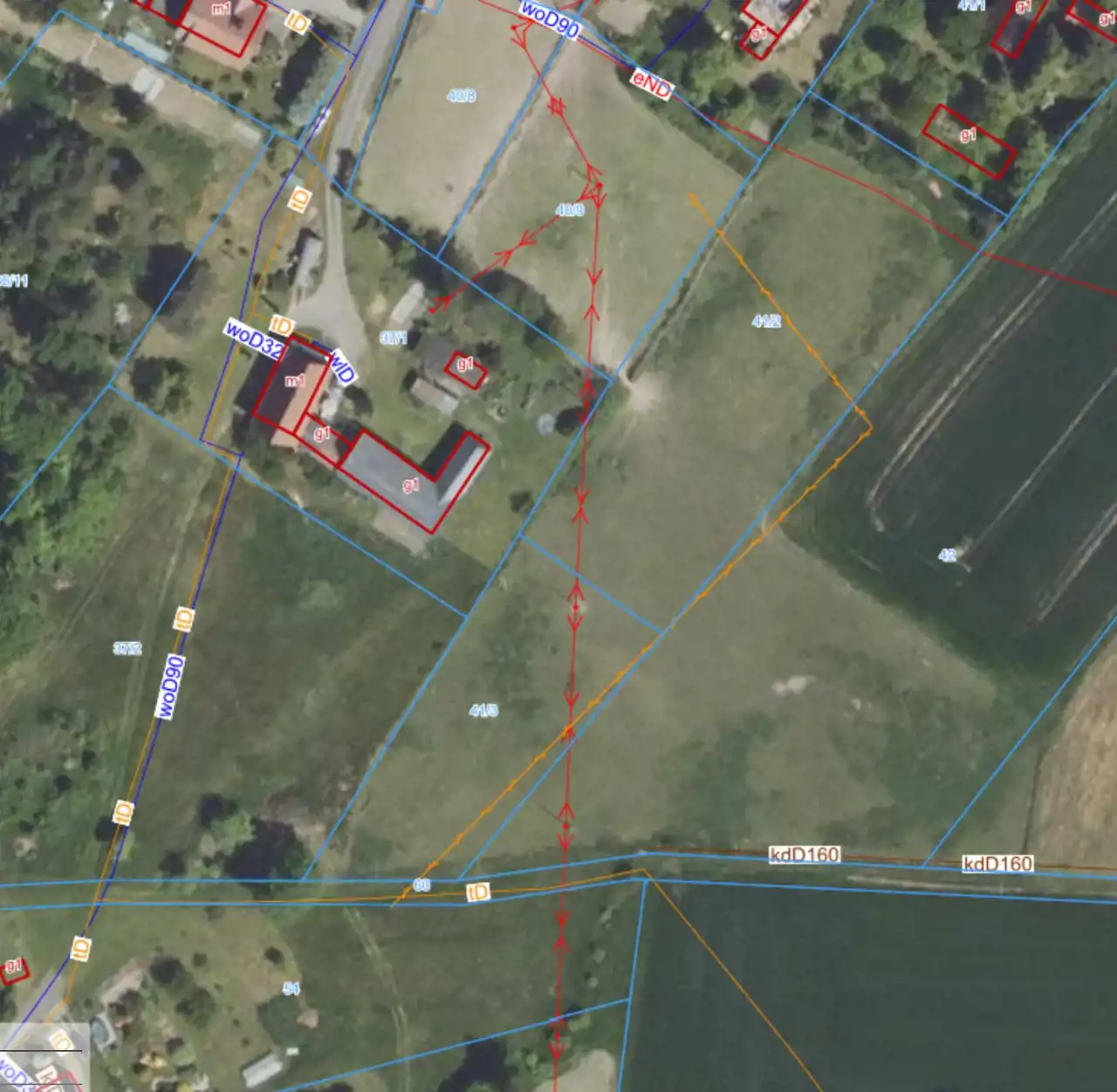 - Dodatkowo możliwość sprzedaży pobliskiej działka zabudowanej (nr. 41/1) o powierzchni 2 510 m2, na której znajduje się poniemiecki dom o pow. orientacyjnej 100 m2 oraz zabudowa towarzysząca tj. ogród, stara altanka, garaż, zabudowa gospodarcza min. pomieszczenie, które dawniej służyło do wypieku chleba.