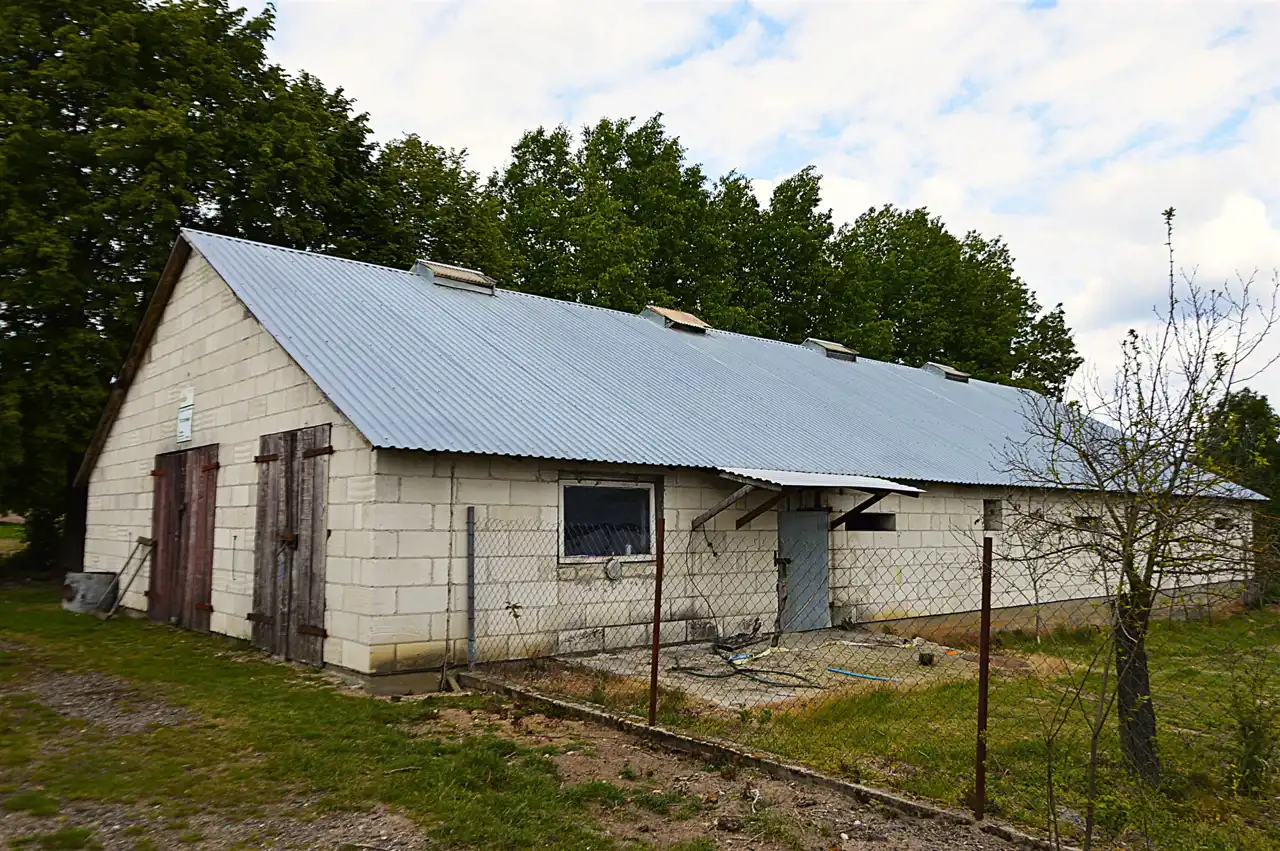- Obora: 12 x 24 m z kojcami, idealna do hodowli bydła lub innych zwierząt (np. alpaki, konie )