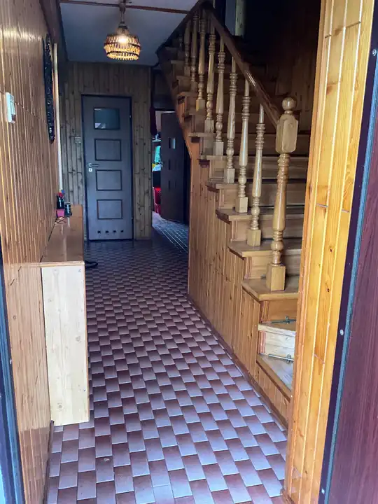 Elewacja 12 cm, styropian czarny frez, wykonana 2022, drzwi zew. Kupione w roku 2020, kryty blachą , rok budowy 1993 , w pokojach drewniana mozaika - parter , góra podłoga z desek świerk , boazeria dół świerk , jasna , schody jesion , terakota korytarz , łazienka , kuchnia .