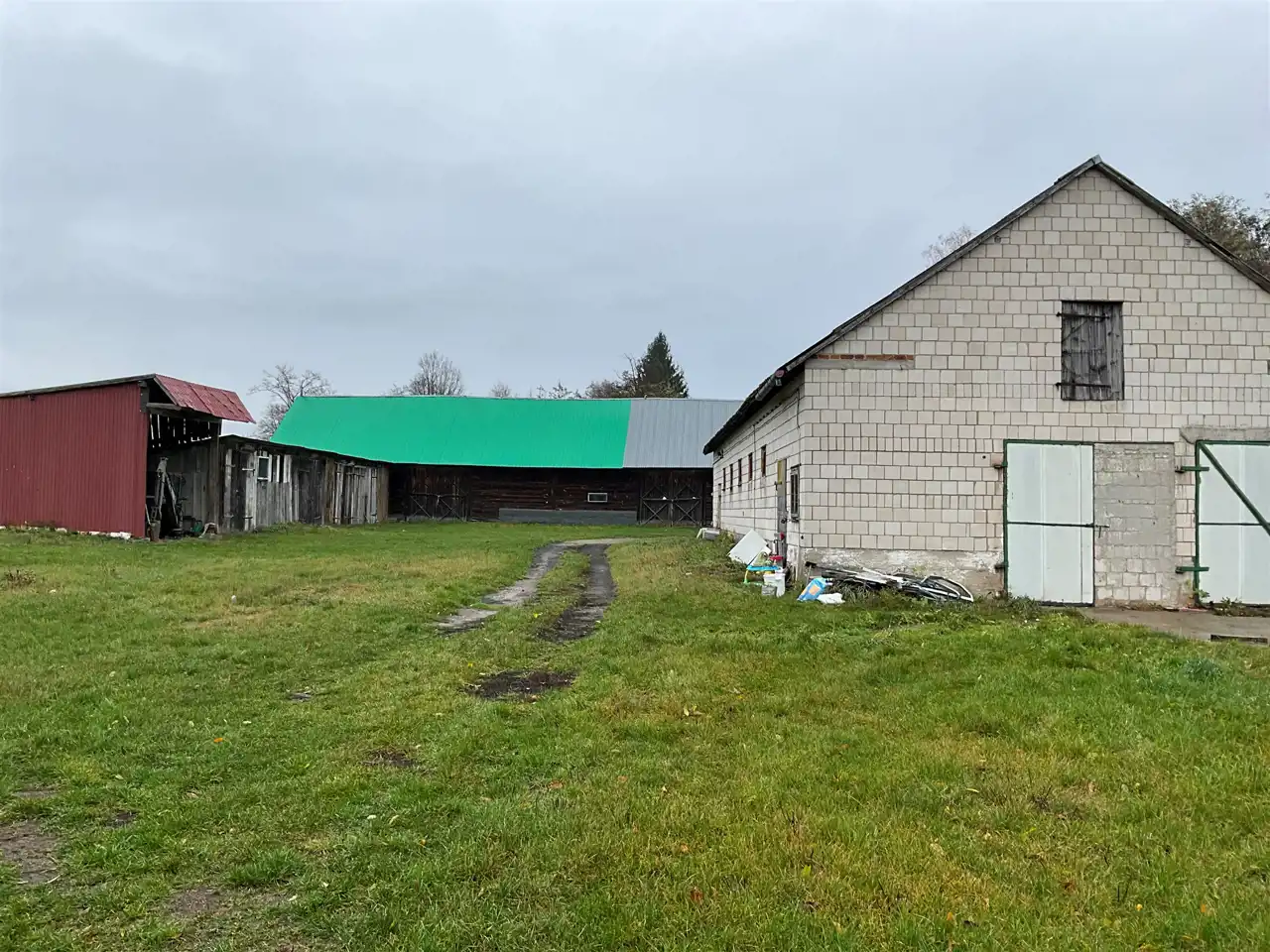 Stodoła wym. 34x10 m , 340 m 2 , z bala ok. 18cm , kryta blachą ,dodatkowo , przy stodole garaże , wiata pom. gospodarcze
