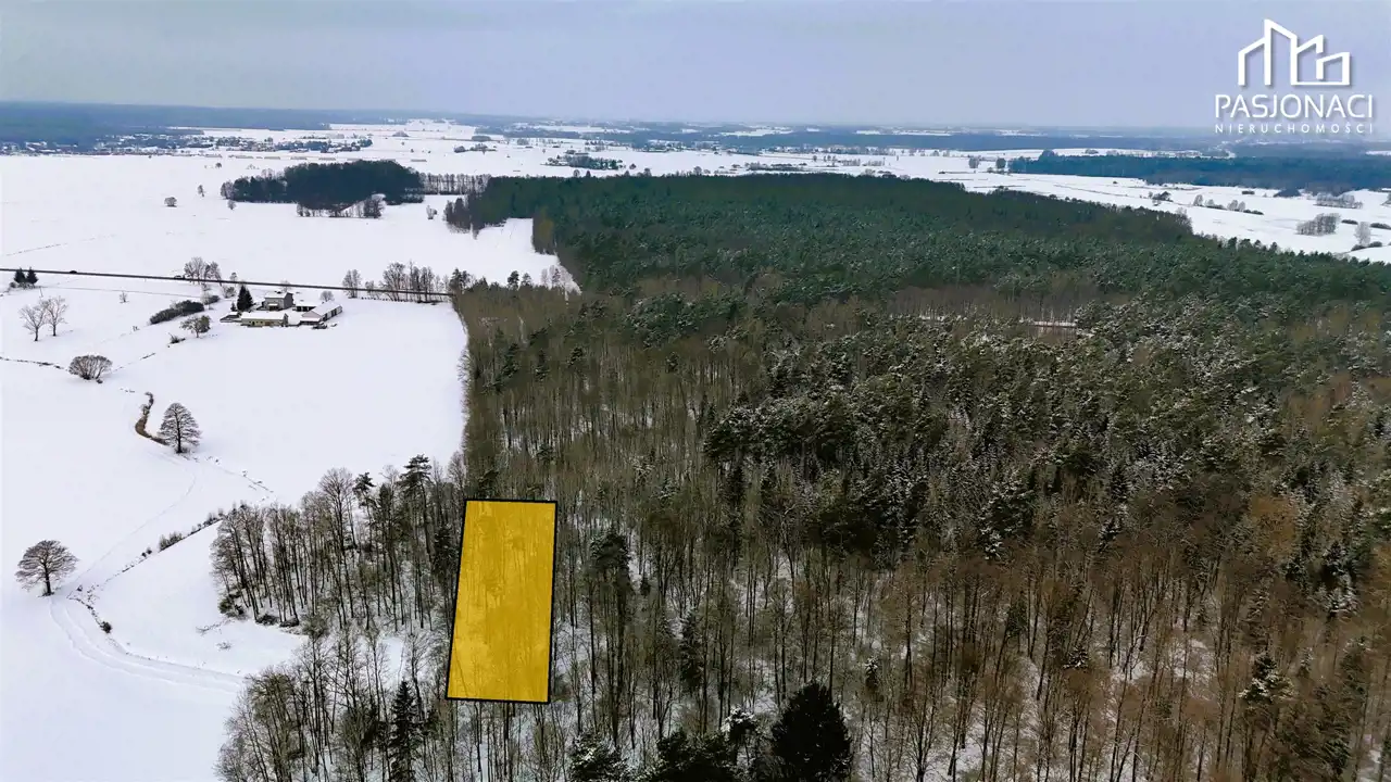 - Dostęp do drogi: działka posiada dostęp przez drogę leśną prowadzącą od drogi wojewódzkiej.