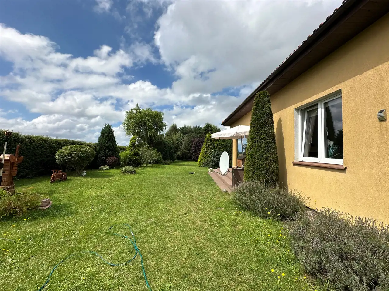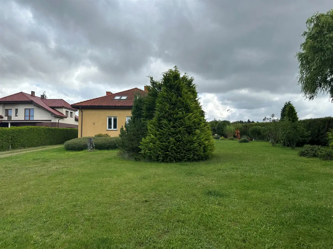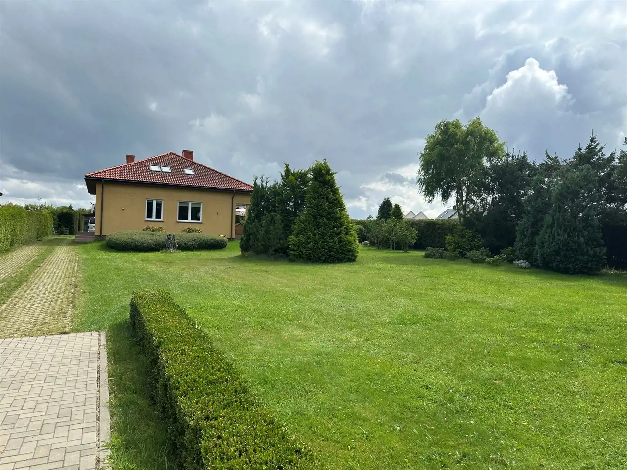 - Działka Zagospodarowana, lekko nachylona, prostokąt