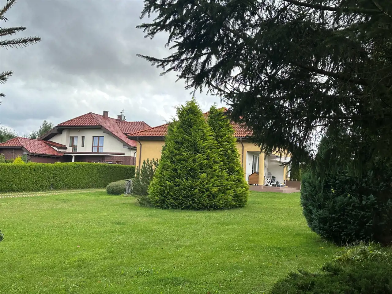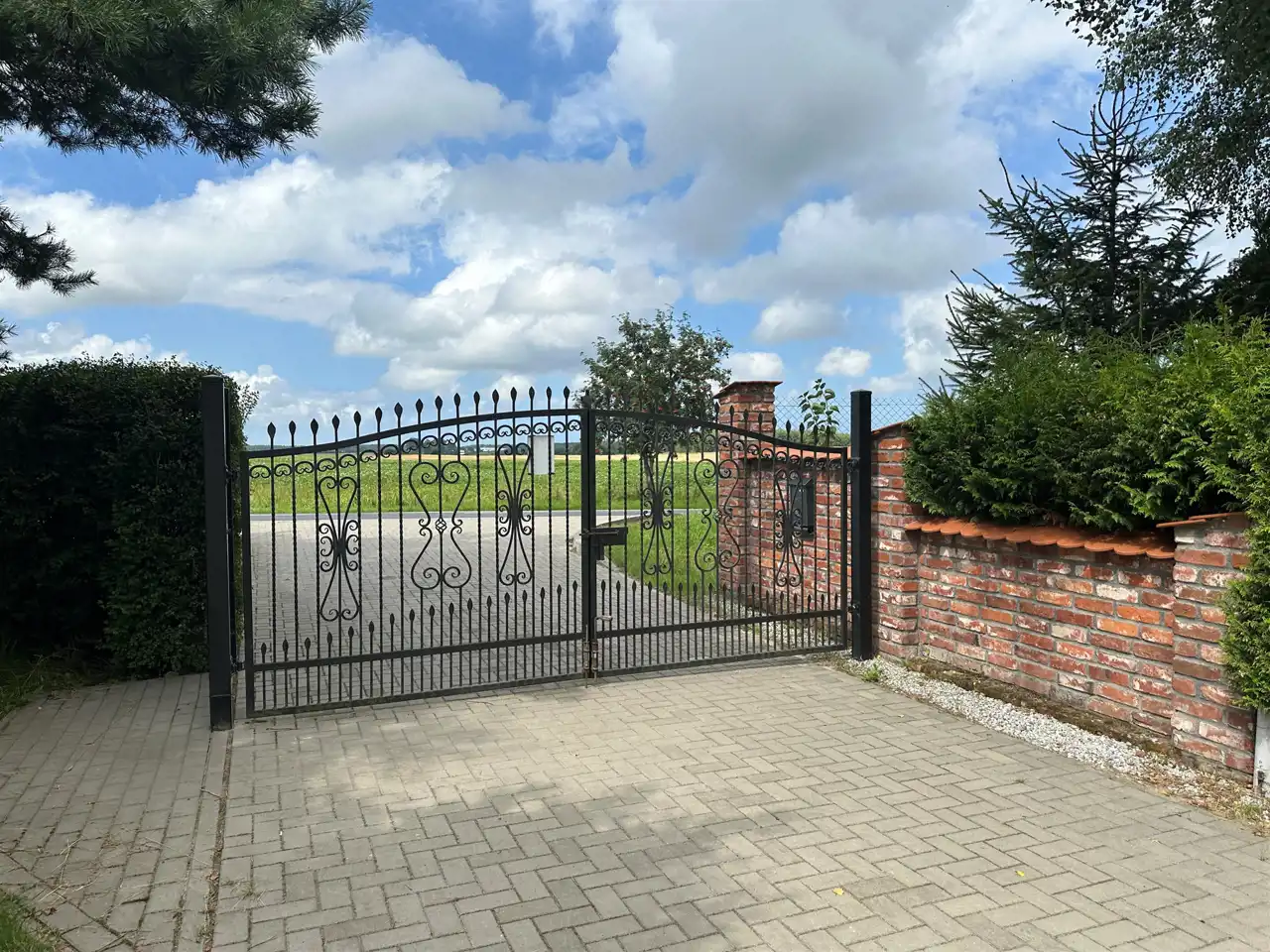 Posesja całkowicie ogrodzona z ciekawym starodrzewiem od strony ulicy dojazdowej.