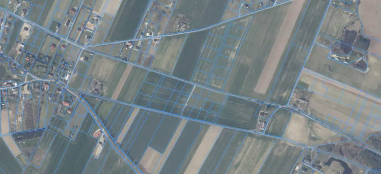 Duża działka usytuowana wśród innych działek budowlanych, w pobliżu rozpoczęte budowy.